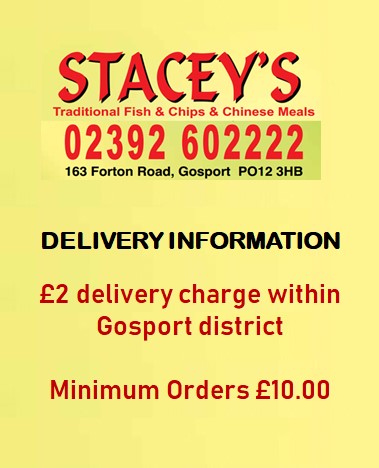 Stacey's Fish & Chips and Chinese Takeaway serves variety of delicious Chinese dishes. We’re passionate about delivering hot, great tasting, freshly prepared Chinese food to our customers